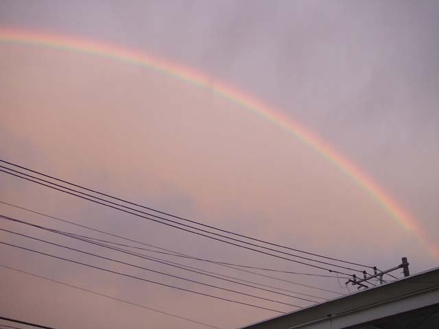 11日、夕立ちがあり、雨が上がったらこんな見事な虹が出ました!!